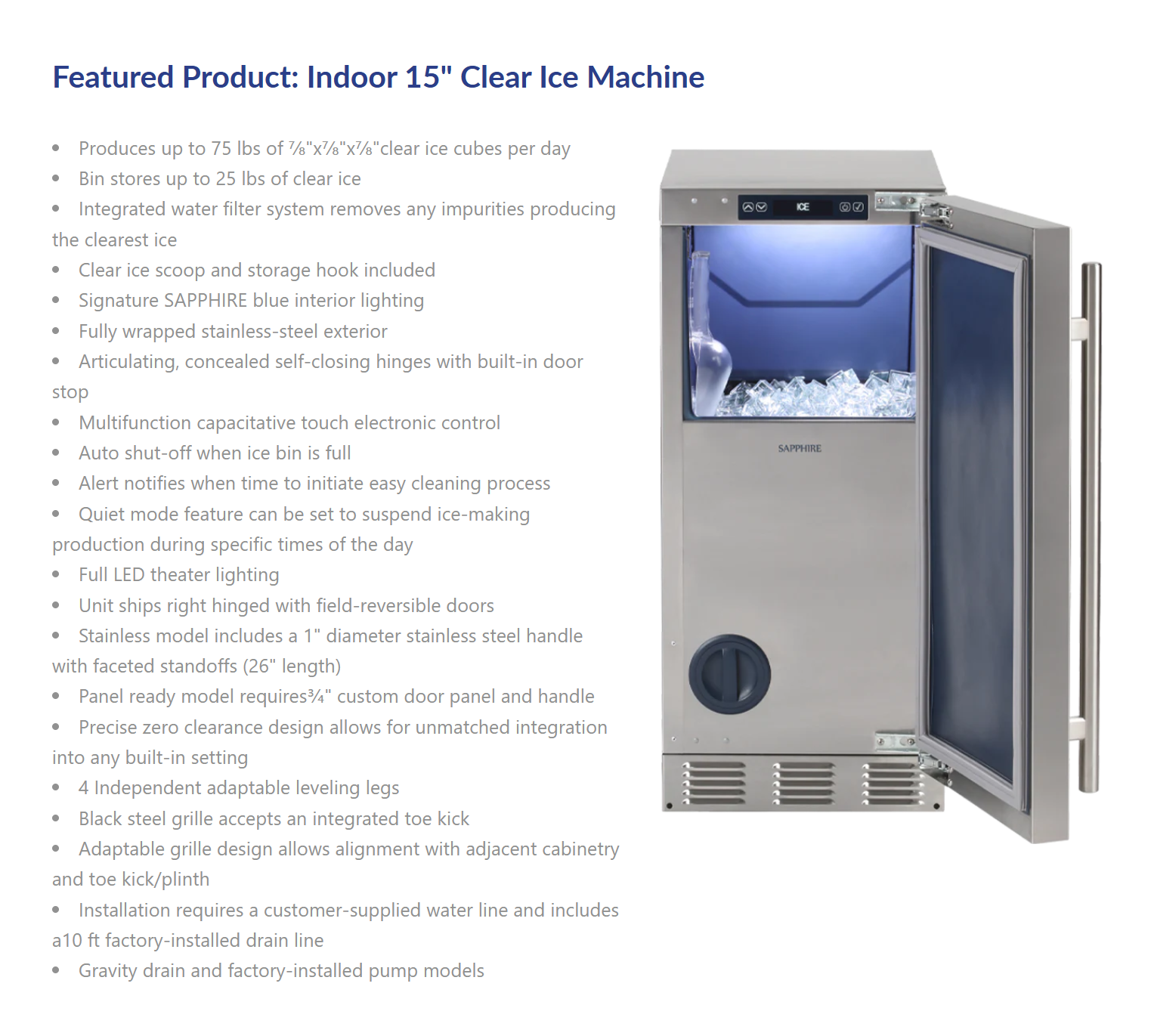 Superior engineering and designed for luxury, your entertainment is effortless with Sapphire Appliances. Whether indoors or outdoors, Sapphire Appliances keep you cooler faster.